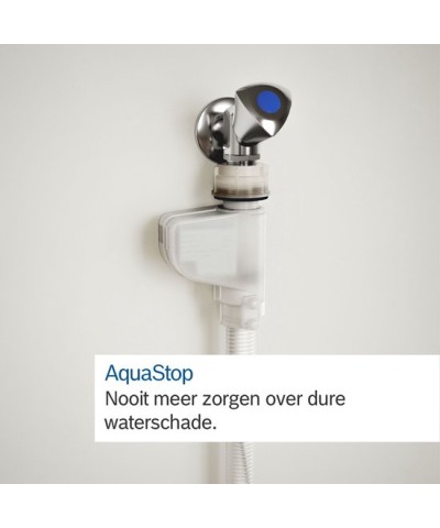 Bescherming tegen lekken is cruciaal voor een apparaat aangesloten op water. Daarom biedt ons AquaStop-systeem gegarandeerde bescherming tegen lekken. In het geval van een lek wordt dit waargenomen in het dubbele gedeelte van de slag, waarna de watertoevoer automatisch wordt uitgeschakeld. Met AquaStop ben je beschermd tegen waterschade gedurende de volledige levensduur van je apparaat.